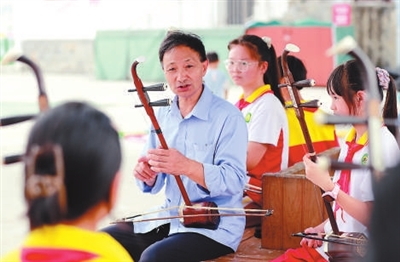 “早些年,這里外出務工人員多,學生流失嚴重,最少時全校只有百把人。實施‘銀齡講學計劃’后,徐朝軍和其他有文體特長的退休教師來到臨江完小,積極配合學校開展減負提質和課后服務,引發流失學生回流潮。目前,我們學校已經有200多名學生,跟著徐老師學拉二胡的就超過100人。”臨江完小校長劉明介紹說。