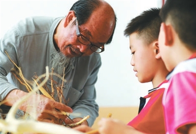 在遵義市播州區芶江鎮中心學校,民間藝人秦在春正在向學生們傳授剪紙技藝。