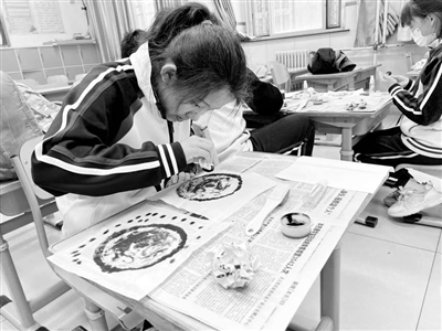 圖為北京市東城區的學生在教師的指導下拓印瓦當。 張霈葭 攝