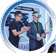 第84屆教育裝備展示會現(xiàn)場參展觀眾體驗虛擬技術產(chǎn)品。