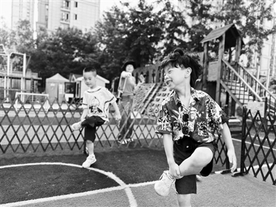 幼兒在戶外游戲場上玩“斗雞”。 吳謝謝 攝