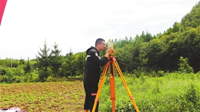 ③河海大學公益橋團隊學生常天亮用經緯儀現場測量橋位坐標。 學校供圖
