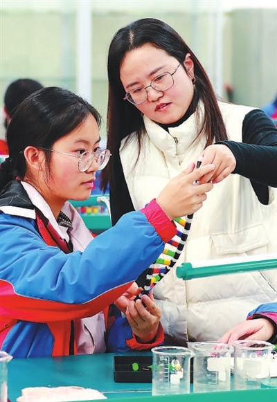 “同學(xué)們,將DNA雙螺旋結(jié)構(gòu)模型拼好后,你們有何發(fā)現(xiàn)?”在四川省甘孜藏族自治州丹巴縣丹巴高級中學(xué)生物教師董玲玲的課堂上,學(xué)生們通過動手操作,獲得對書本知識的直觀認(rèn)識,回答問題積極踴躍。