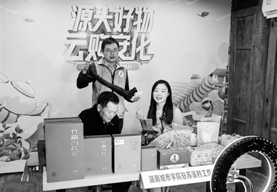湖南城市學院駐村工作隊帶領村民直播帶貨。湖南城市學院供圖