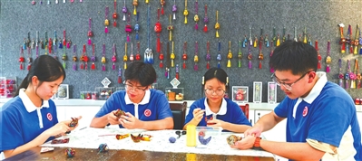 ②百色民族高中學生正在制作“麼乜”。李勇芳 攝