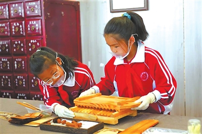 “版畫的特點就是線條清晰、簡單、夸張,能讓小學階段學生更好理解美術教學?!睂W校美術教師、“甲馬版畫”指導教師周鵬告訴記者,版畫經歷繪制草稿圖、電腦翻印、木板上畫等步驟,學生都會全程參與。