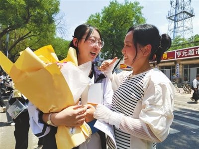6月9日,在新樂市第一中學(xué)考點,結(jié)束考試的考生與前來迎接的家人擁抱。 王瑞夫 攝