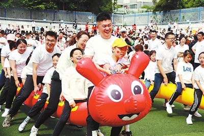 青島市西海岸新區(qū)太行山路小學(xué)開(kāi)展親子運(yùn)動(dòng)會(huì)。學(xué)校供圖