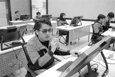 ①首屆世界職業院校技能大賽金獎選手、柳州職業技術大學的安宸厲(左一,印度尼西亞籍)正在學習VR知識。