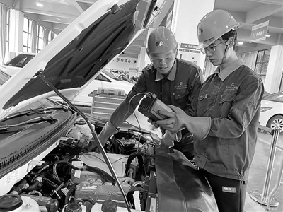 ④南寧職業技術大學新能源汽車技術專業學生進行新能源汽車維修實訓。鄧汝奎 攝 除署名外均由學校供圖