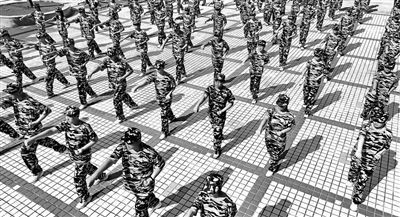 近日,江蘇省連云港市錦屏高級中學,高一新生在參加軍訓。耿玉和 攝