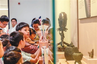 浙江省溫州高鐵新城實驗學校一年級學生到溫州龍舟文化博物館參觀研學。劉吉利 攝