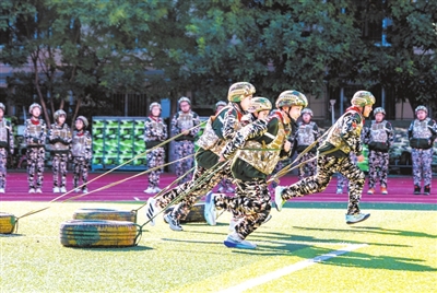 近日,內蒙古呼和浩特市玉泉區五塔寺東街小學舉行“心系國防 強國有我”主題教育活動。學生通過參與抗戰故事講述、戰術演示、涂彩偽裝等軍事技能挑戰項目,在親身實踐與沉浸式體驗中增強家國情懷與國防安全意識。