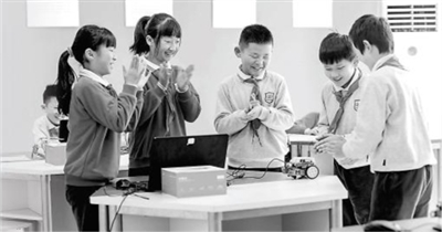 芙蓉區(qū)育英西垅小學(xué)編程社團(tuán)的學(xué)生們通過(guò)編程讓機(jī)器人動(dòng)起來(lái)。 學(xué)校供圖