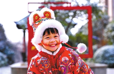 1月1日,在河南省商丘市夏邑縣一居民小區,頭戴虎頭帽、身穿傳統服裝的孩子在玩耍。