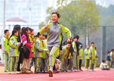 近日,湖南省長沙市開福區新竹第二小學開展“雋園歡騰慶元旦 騏驥昂首啟新程”活動。圖為學生在進行班級接力賽跑。郭立亮 攝