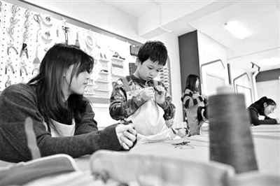 1月30日,在天津市河北區(qū)王串場街道環(huán)盛里社區(qū),小朋友在工匠指導(dǎo)下縫補(bǔ)皮具。當(dāng)天,王串場街道舉辦“修補(bǔ)巷·工匠學(xué)院”少年班活動(dòng),邀請(qǐng)經(jīng)驗(yàn)豐富的工匠師,向孩子們講解皮具修補(bǔ)、織布等手藝,豐富他們的假期生活。